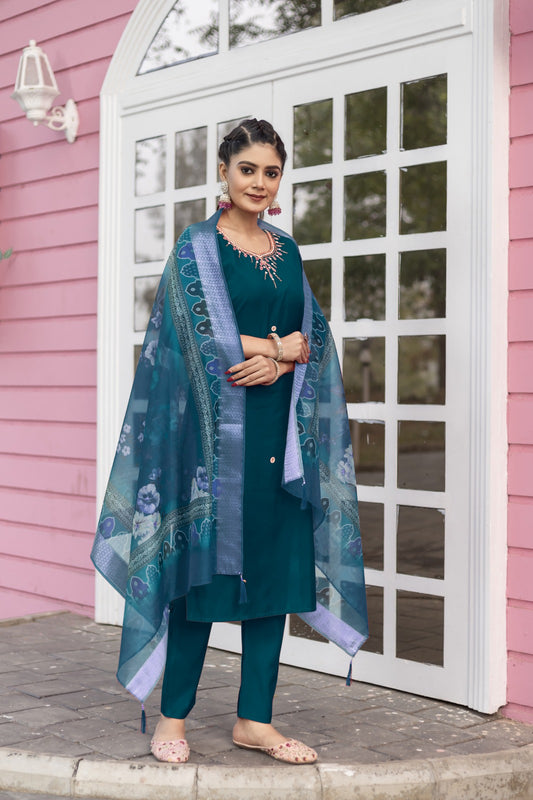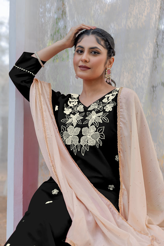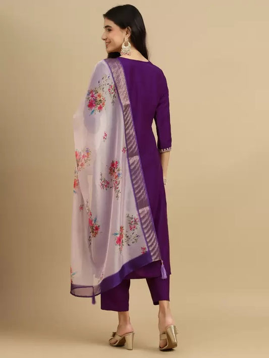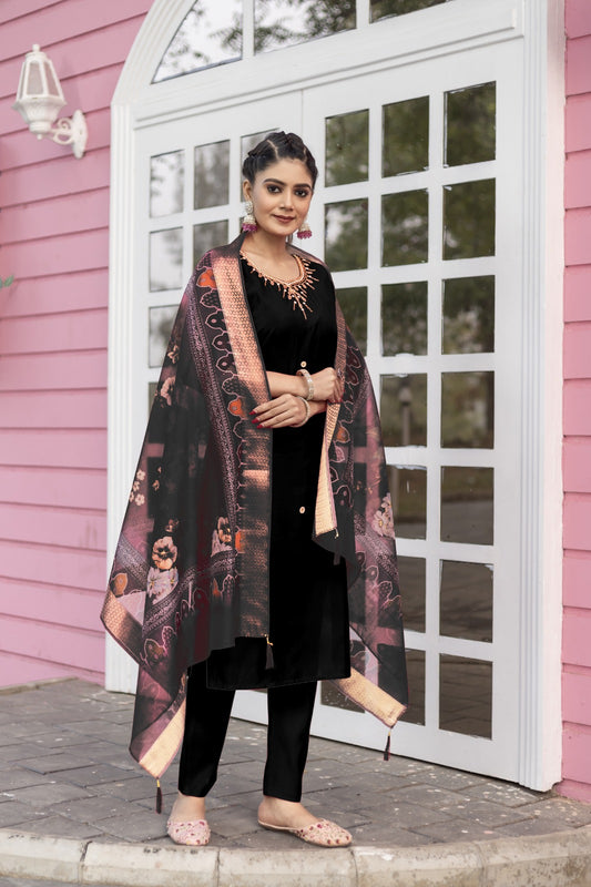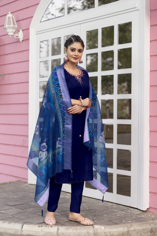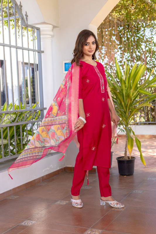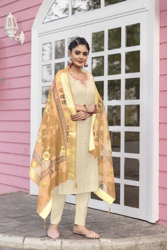 Women's Embroidery Kurta And Pant Set With Dupatta | Embroidery Kurta Set | Suit