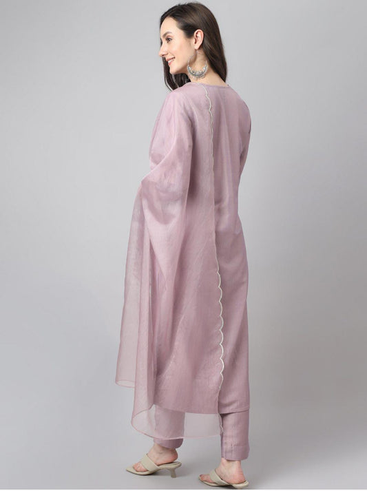 Women Ethnic Motifs Hand Work Regular Kurta Pant With Dupatta