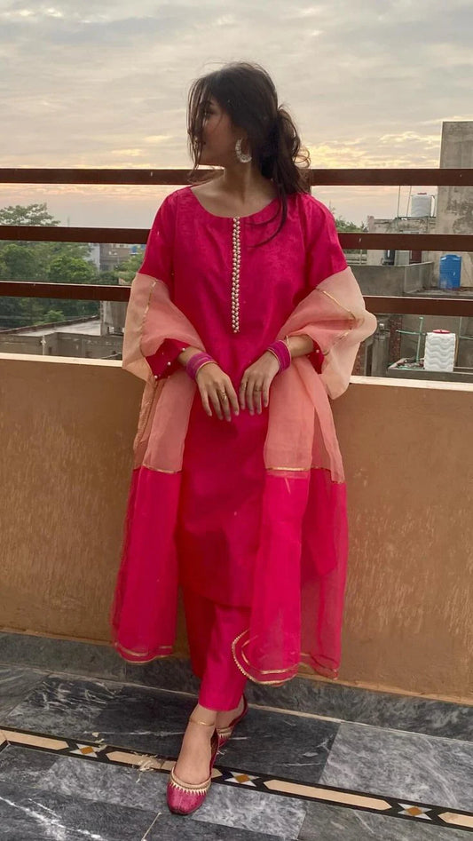 Women Ethnic Motifs Hand Work Regular Kurta Pant With Dupatta